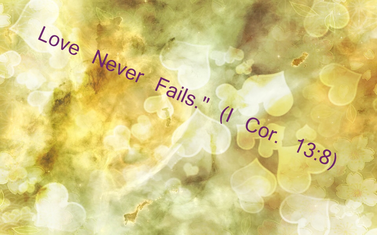 As I was driving down the road, and I started thinking about the things that are failing in our society. The economy, the government, marriages, families, laws, schools, businesses – the thought came to me from Gods word as a gentle reminder “Love Never Fails.” (I Cor. 13:8)
