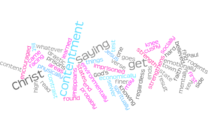 That is the key to contentment. Knowing that regardless of what you may be physically, emotionally, mentally, socially, economically, spiritually and environmentally facing – in God’s strength you will get through it with Jesus Christ.