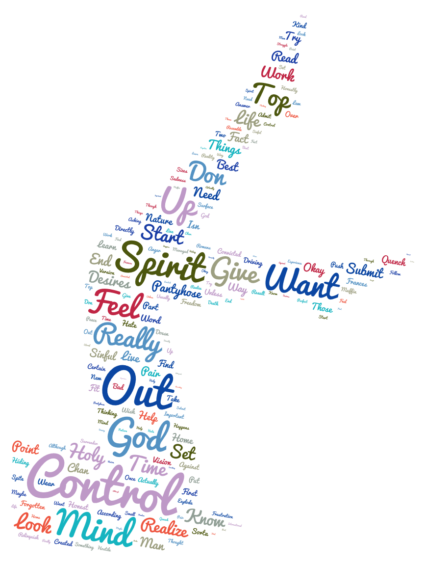 I wish I had the answer to how to want to give up control and how to really do it. I know I don’t want my life to resemble a bad pair of control top pantyhose, so I will start with asking God to help me set my mind on what the Spirit desires, to help me to want to surrender that control and then to actually follow through with it. I realize that it will be a struggle, like trying to put on a pair of pantyhose that are two sizes to small. I have a feeling though that when I really give up control once and for all – that it will be a perfect fit!