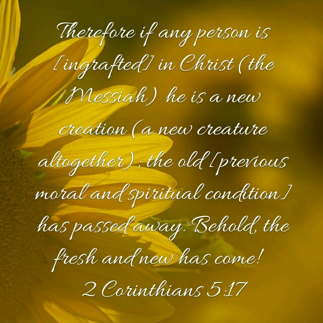 Sunday Pastor Cass was preaching on Who we are in Christ. He shared II Corinthians 5:17. I know the verse I can quote it. Today it really spoke to me. He read this from a different version than I am used to that stated that we have been in grafted. God has become so much a part of us and us a part of him that you can’t tell where He begins and where we end.