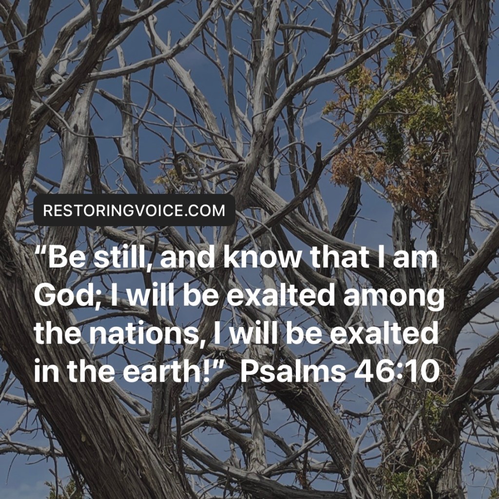 “Be still, and know that I am God; I will be exalted among the nations, I will be exalted in the earth!” Psalms 46:10
