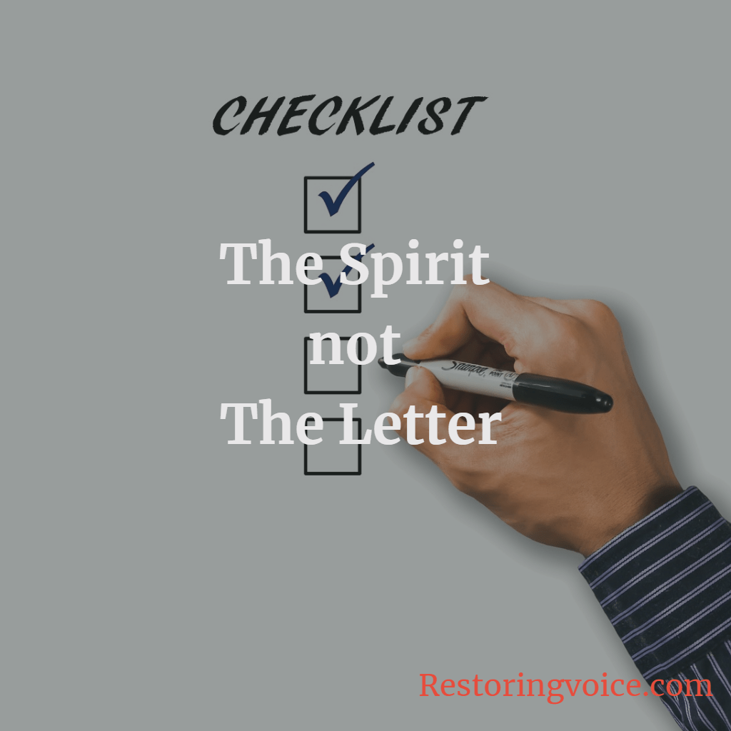 “The spirit of the law, not the letter of the law.” I said this recently to a friend who told me that it was unlike me to not follow the rules. So this Scripture jumped off the page reminding me of our conversation.