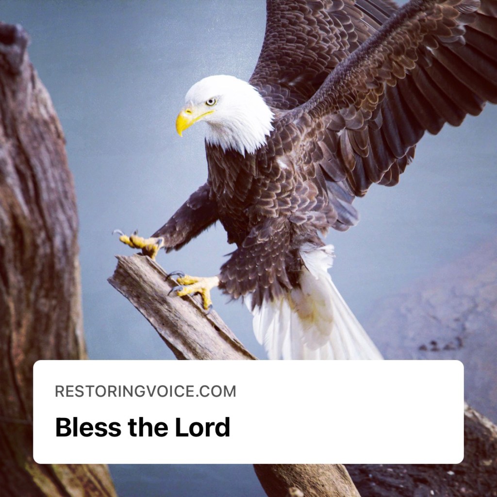 Eagles change their feathers when they are young. God changes what I look like also. I can bless God with my words but I think he wants my obedience to His Word. Bless is a verb, so it takes actions to bless Him.