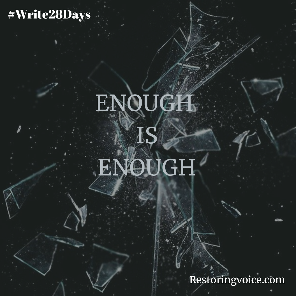 Sometimes people don’t feel they are worthy of anything better than what they have known their whole life, or since the beginning of the brokenness. I can only say that you deserve better. Right where you are, you are enough. You are enough to say “My enough is enough. I have had enough. So enough is enough.”