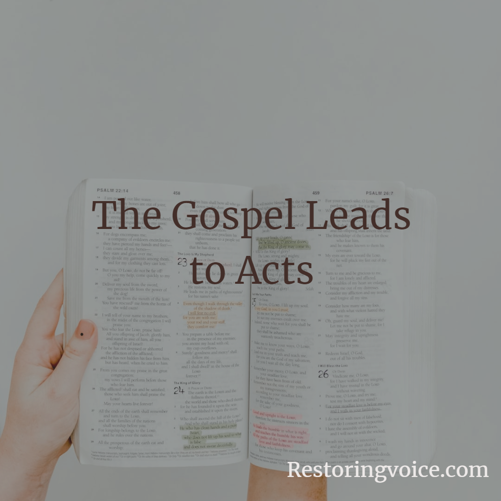 - The gospel must always lead to acts. (It is not enough to hear the Gospel, it must produce change in you as you act upon it.)
