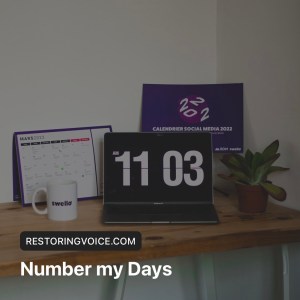If I consider that my days are numbered, I am more intentional with my time. It is easy for me to fall into a routine and treat every day without thought. Weeks, months, even years go by and I realize that I have lost touch with those things that are important to me, but not part of my every day routine.