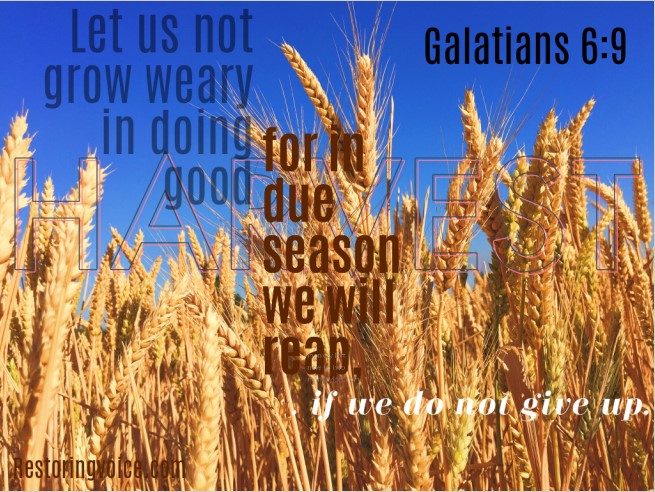 Prayer: Lord, I feel like this passage gives me more questions than answers, but I do know that I don’t want to grow weary of doing good. I know that you are faithful to Your word and that in due season I will reap if I did not give up. Help me to be open to laborers that You send to “my fields”, and realize that growth will come from You when each is faithful to the tasks You put in front of them.