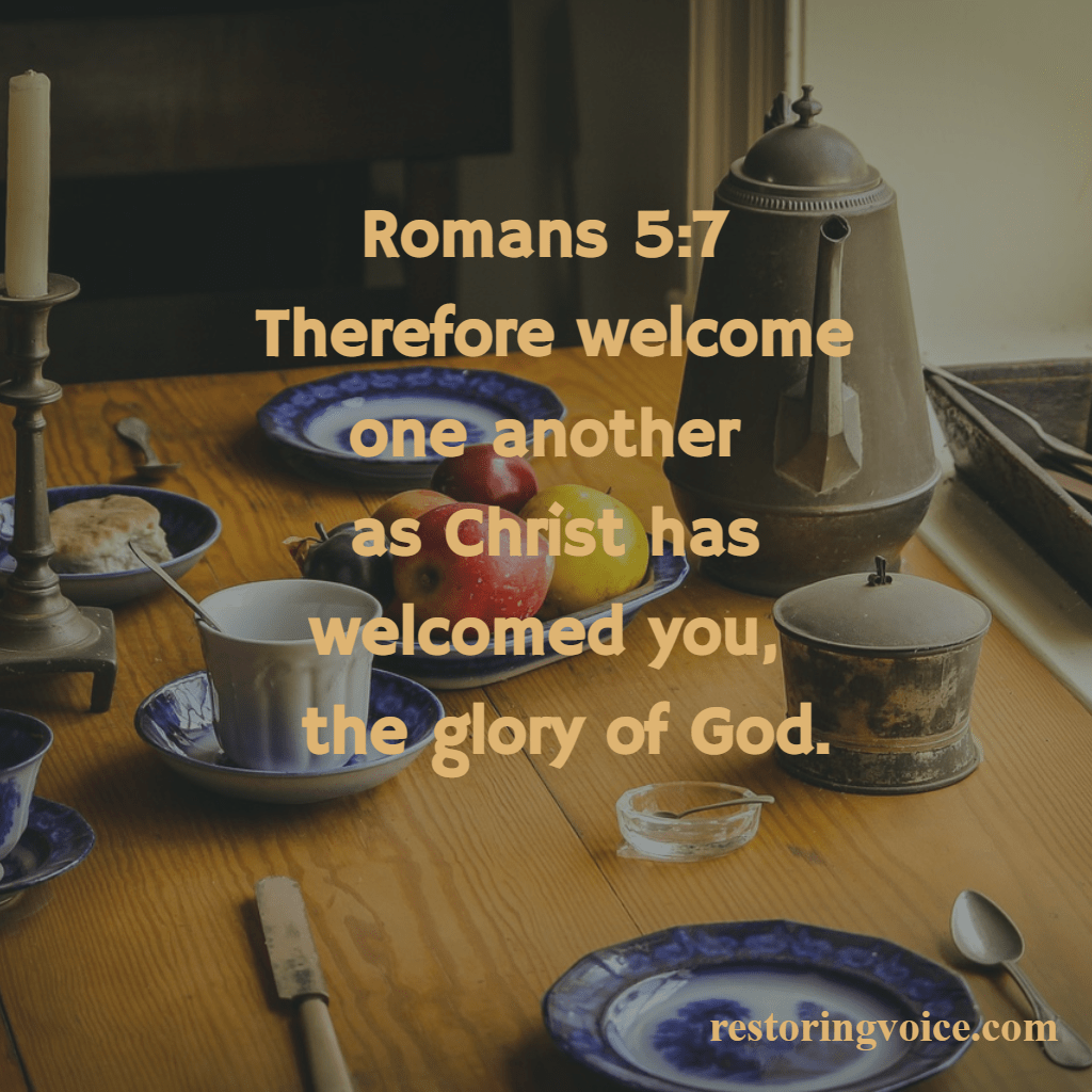 Romans 5:7 Therefore welcome one another as Christ has welcomed you, for the glory of God.