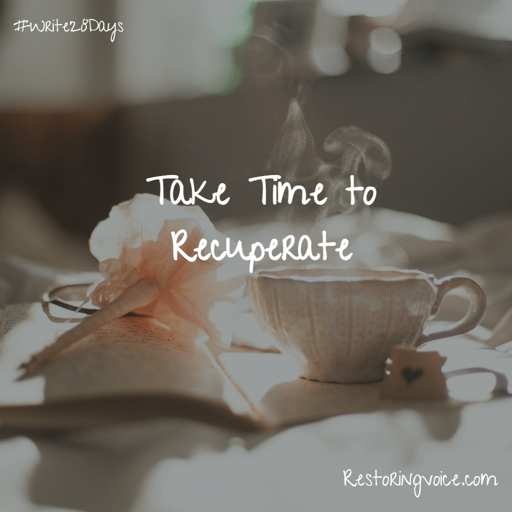 We all need to take time to recuperate. When we feel like the wait of the world is on our shoulders, we need to stop and take time to rest at His feet. When we are going strong in ministry and things are going just right, we need to take time to rest in Him and let Him carry the load. When things go wrong, as they sometimes will, we need to approach His throne and receive His grace and mercy to minister to our weakness. Regardless of if things are good or bad, we need to follow in Christ’s footsteps and take time to recuperate in God’s presence.