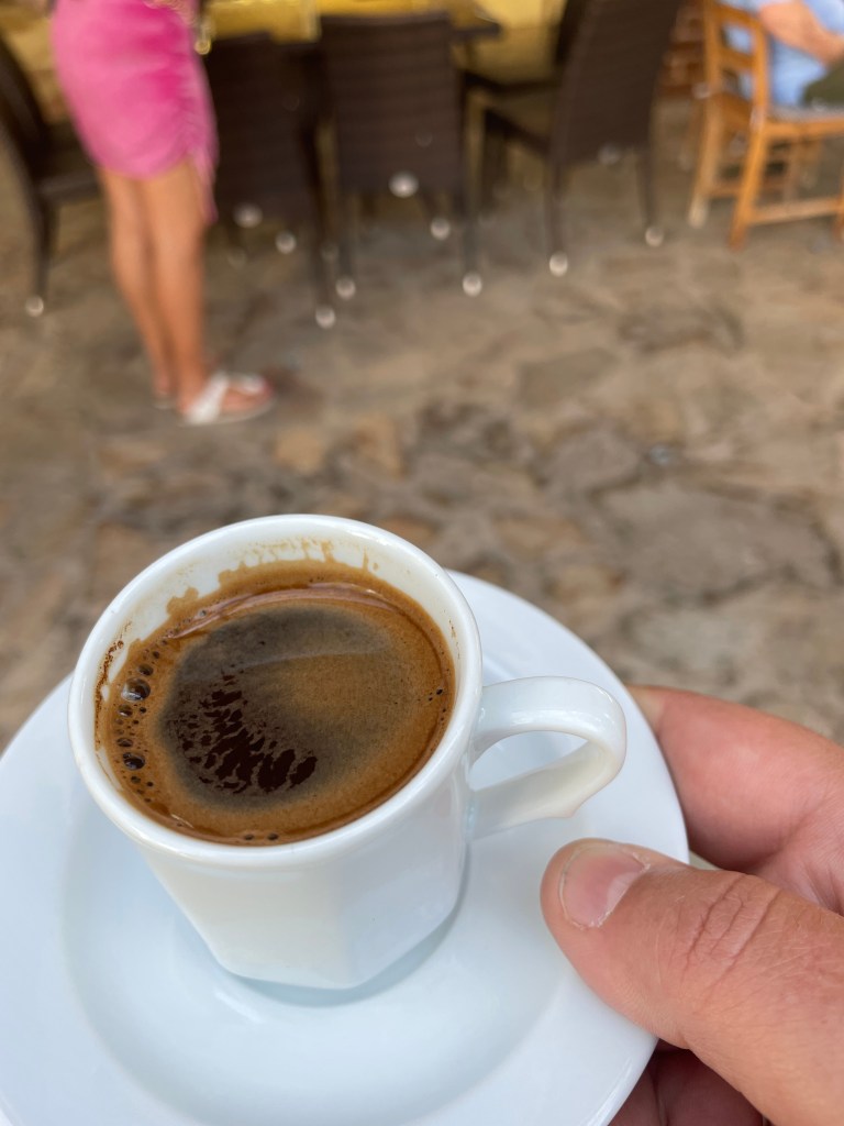 We were told they drink coffee a lot in Turkey and Greece. Before breakfast they enjoy coffee. We saw a lot of coffee shops, very few had flavored coffees like Starbucks. I did have a hazelnut latte, but it was hazelnut flavored coffee, not flavored cream or syrups. I learned to drink black coffee with one white sugar and one brown, I have kept the habit instead of all the added calories.
