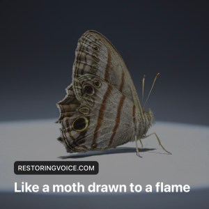 My spouse and I were sitting outside at the fire pit enjoying the cool of the night. A small moth came out of nowhere and flew directly into the fire. I’ve heard the saying before “like a mouth drawn to a flame,” but I’ve never actually seen it happen. The moth did not hesitate. It did not try to escape even as it started to burn. I didn’t understandwhy a creature would not try to save itself.