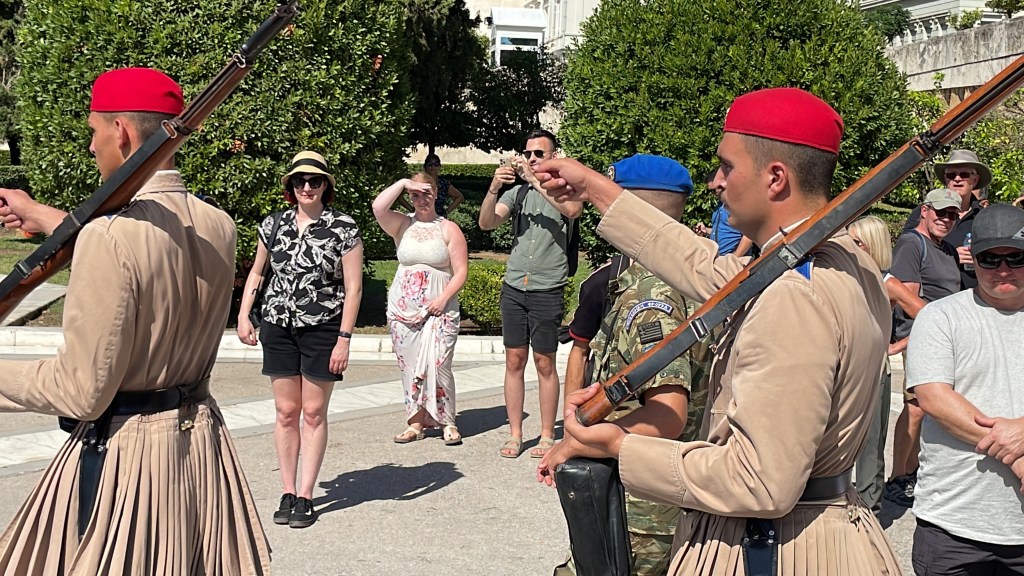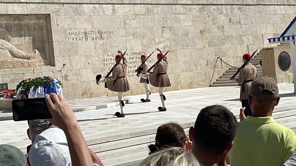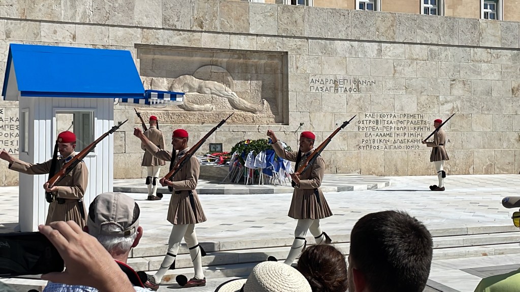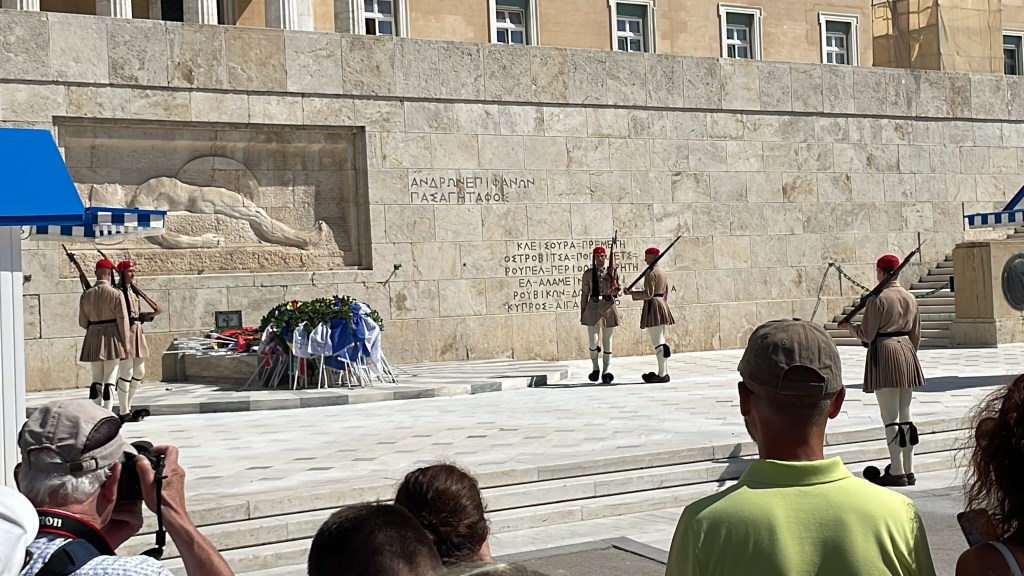 When I think about a soldier with his full armor on, I picture someone ready to engage in battle. A warrior ready to fight. Another time where I have seen soldiers fully dressed, but not for battle is a soldier’s or other officer’s funeral. Those for the gun solute are also dressed in uniform. While in Greece, I had the opportunity to see the changing of the guard at the tomb of the unknown soldiers.