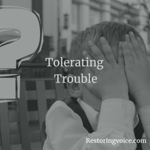 God shifted my focus and showed me I needed to tolerate what I could not change. My temper tantrum didn’t guilt him into magically wanting to do what I wanted. God showed me in the moment that I had the ability to stop making a big deal out of it. I could wait for my husband to do it in his timing. I could communicate why it was important to me. However, I could not make my husband do what I wanted. Instead, God moved me to tolerating trouble.