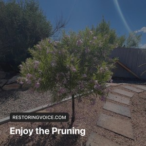 I won’t try to remember it all, but today I found deep satisfaction in taking off the things that were sucking the life out of my little Desert Willow. I felt like I would finish, step back and realize there were additional branches I missed. My husband made a comment to me about not using the work gloves when I found myself bleeding from something that I pulled off. It tried to tell him it is easier if I can feel what is going on with the branches. When I finished, I cut off a few low hanging branches.