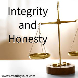 Today integrity has been the theme in my devotional time. The commentary in my Founder’s Bible said “integrity exists when there is consistency between what one thinks, says, and does, when actions actually match words.“