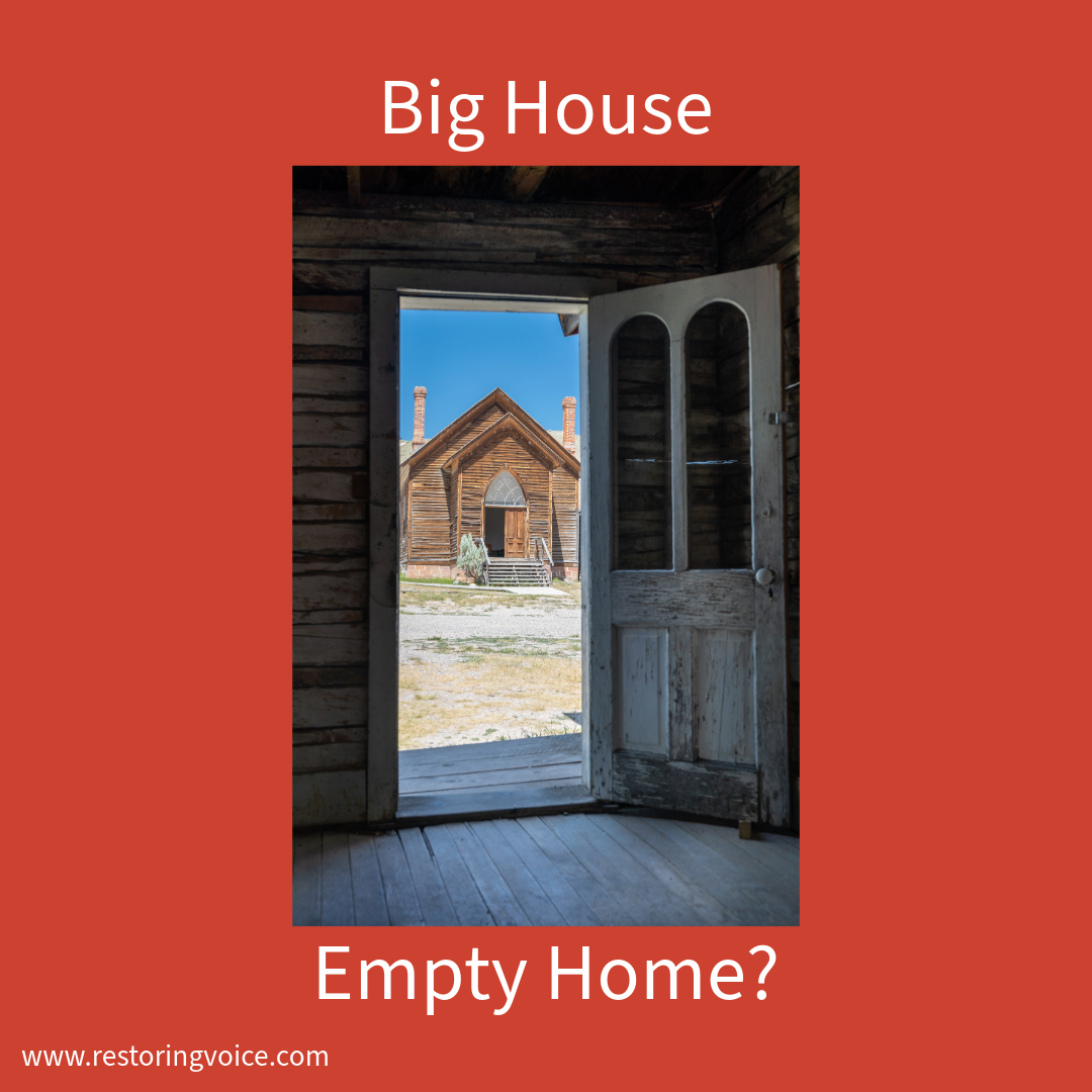 What if our churches are big houses but empty homes? The question came from another comment related to being an empty nester. When the statement was initially made, my mind connected as an empty nester – sitting in a four bedroom home, with grown children and grandchildren that don’t live near. I sat with the feeling for a moment, but brushed it off, it really is what happens in life. Our children grow up and they move away (or in my case we moved away). I want the space so they can stay with us when they are here. I also know I enjoy my space, even when it is just me and my husband. I need it to process. I need seperate spaces so I can completely disconnect.