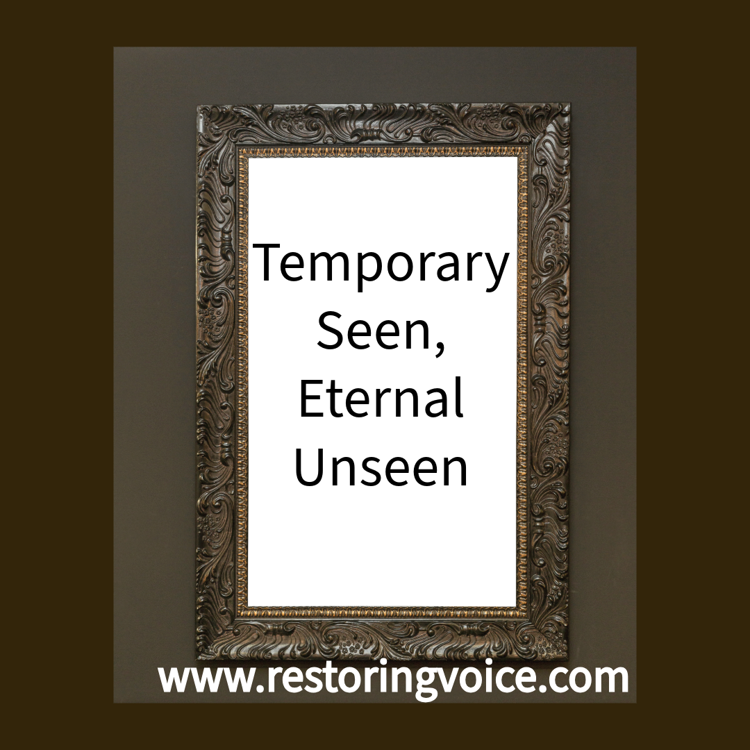 Our bodies are temporarily seen, while currently our eternal souls are unseen. Taking care of our physical bodies is important but it is more important for us to take care of the eternal.